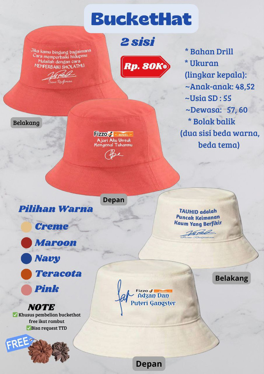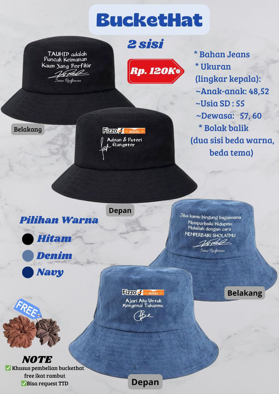 Jalan-jalan pakai buckethat ada kata-kata dakwahnya. Orang baca, trus terinspirasi atau bahkan mungkin mendapatkan hidayah dari sana. Kamu dapat pahalanya.