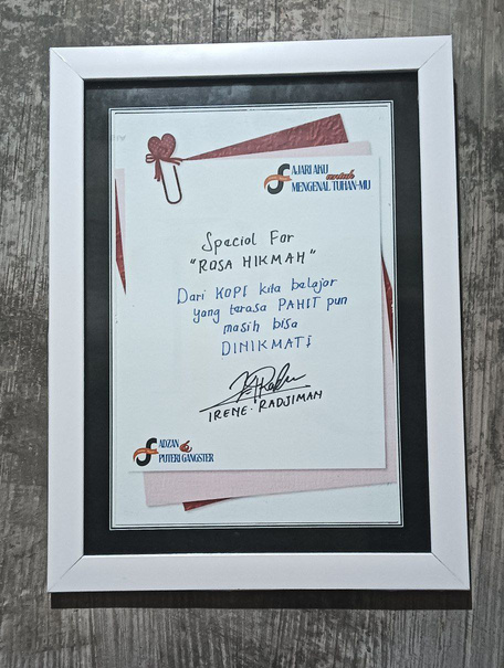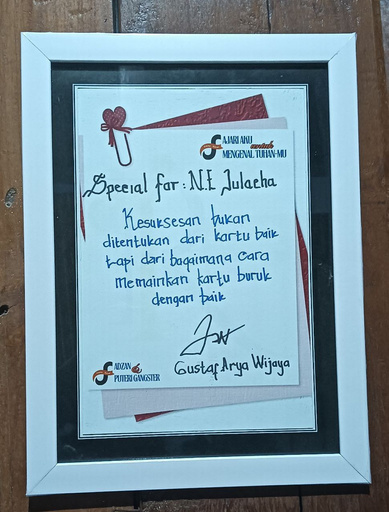 Hiasan Dinding Dengan Tanda Tangan dan Tulisan Asli Tokoh Gustaf, Nara dan Author
